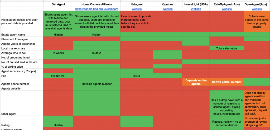 By conducting this comprehensive competitors analysis, I aimed to gain valuable insights and identify best practices that could inform the refinement of GetAgent’s product offerings and improve the overall user experience. This data-driven approach would help us make informed decisions and align our product with the evolving needs and expectations of our customers.