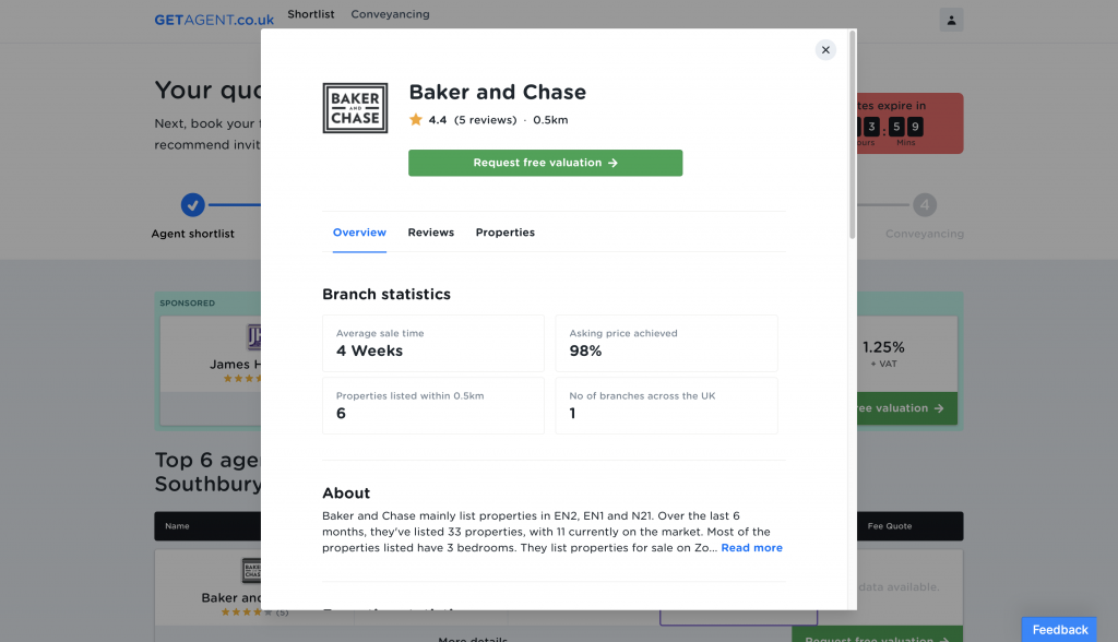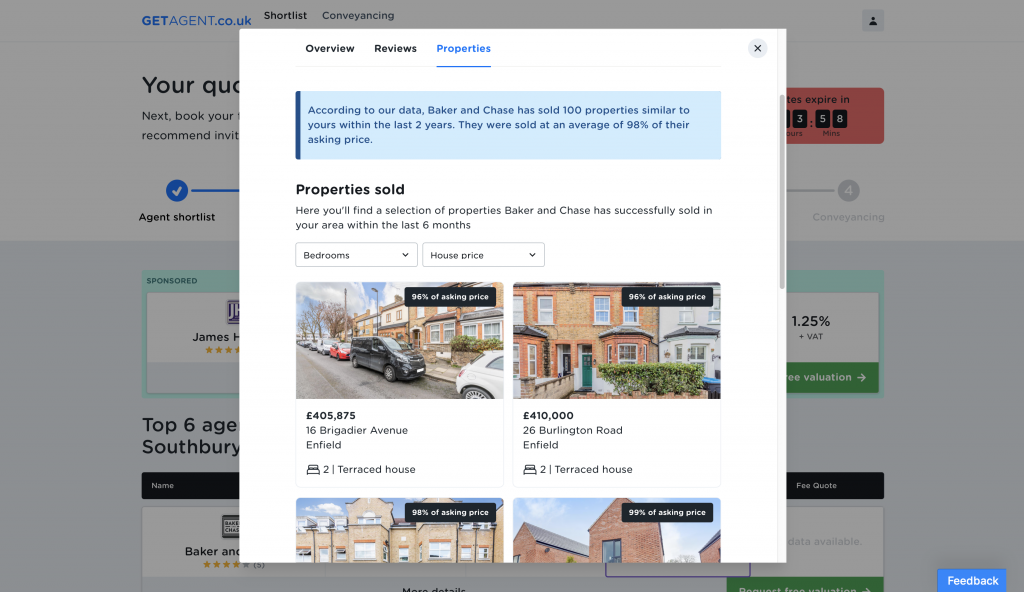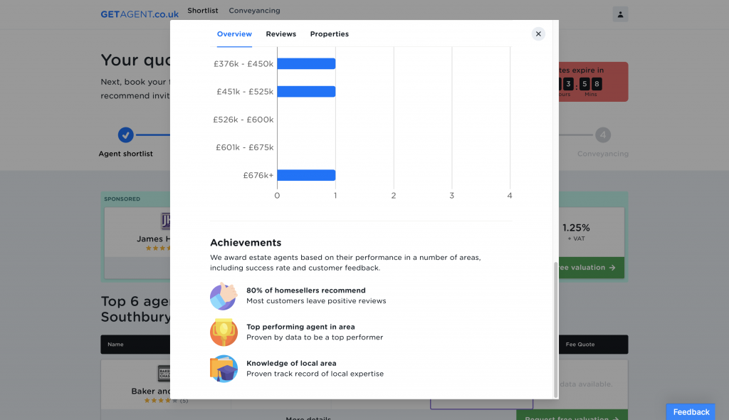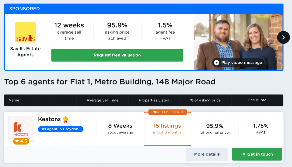 The vendor dashboard is where home sellers are led to find the best estate agent to sell their home. This is where GetAgent makes it money, as with the vendor they have no leads to send to agents and without leads GetAgent cannot make a revenue.